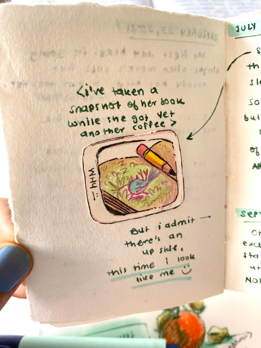 And felt so silly, that even now, most of my art is personal, documenting my life, my thoughts, ideas. And i guess somewhere in the mix of wanting to share it, and wanting to keep myself accountable to continue drawing, I forgot my sense of agency toward it. Making this little journal was like coming back to the afternoon playtime. And disengaging from the pressure of if im 'driving my art ahead'.